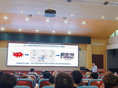 来自南昌大学生物医学创新研究院的张文华副院长对焦虑产生脑机制及干预进行了详细的讲述,指出引起焦虑情绪产生的特定神经环路为“前额叶皮层-杏仁核-海马”,干预调控的两个重要调控分子分别为:- γ-氨基丁酸(GABA)受体和SK2通道。