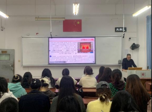 3月15日19时,我校分析测试中心主任龙传南在9104教室给所联系的生命科学学院2022级生物科学(一本-公费师范)1班的全体同学开展“聚焦2024年全国两会精神,浅析中国经济发展大势”的专题讲座活动。