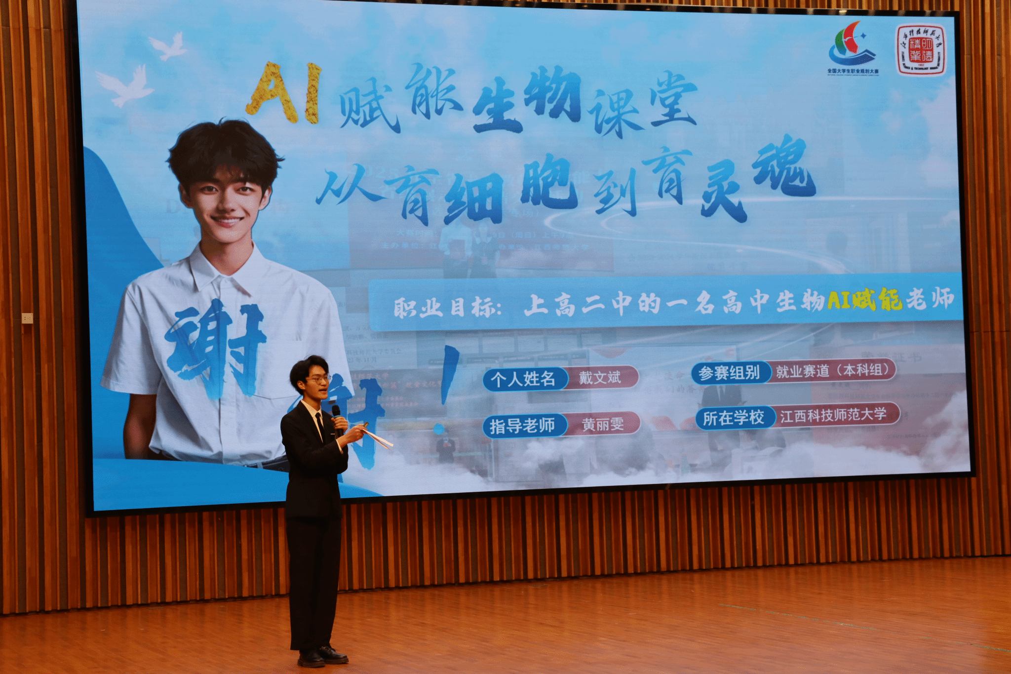 在就业赛道的激烈角逐中,我院学子表现尤为亮眼。本科组赛场,戴文斌凭借《AI赋能生物课堂,从育细胞到育灵魂——上高二中的一名高中生物AI赋能老师》规划方案,将前沿技术与教育初心深度融合,斩获金奖;陈敏贤聚焦农业生物制剂研发领域,以《微生万物,沃野耕耘——我的农业生物制剂研发员成长之路》的专业规划,同样拿下本科组金奖;陈雅楠深耕老年健康领域,凭借《膳食创新,营养征程——老年群体公共营养师成长之路》的项目荣获铜奖,用专业视角诠释了青年学子的社会担当。研究生组赛场,吴俊萍以《播撒科学种子,聆听生命律动——争做一名深耕课堂的高中生物教师》的规划方案,凭借对教育事业的执着追求与科学合理的成长路径设计,斩获金奖,为学院研究生群体的职业发展树立了优秀标杆。