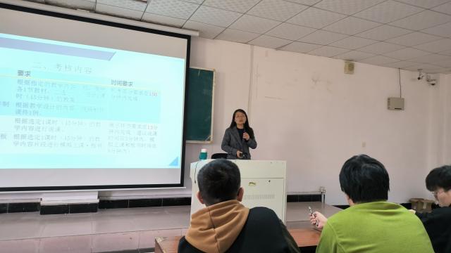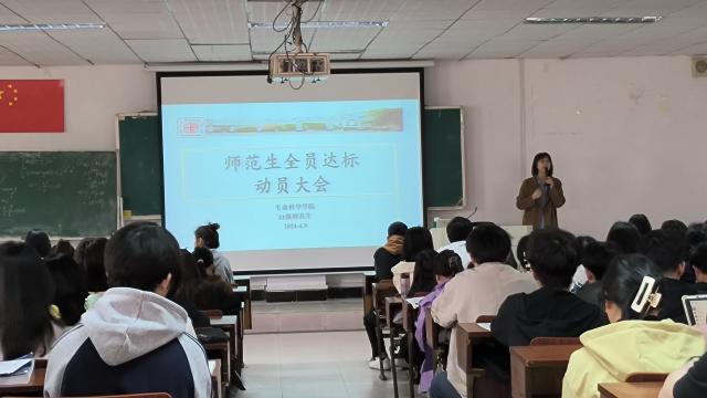 为进一步落实学校关于师范生教学技能全员达标的相关工作要求,生命科学学院于2024年4月9日下午在枫林校区9号教学楼9211教室召开师范生全员达标动员大会,会议由学院师范教研室主任宋雪琳主持,学院党委副书记张水印、分管教学副院长袁美兰、师范教研室教师刘少芳以及2021级全体师范生参会。