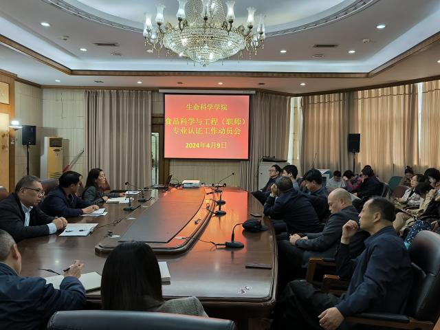 2024年4月9日,生命科学学院在枫林校区图书馆迎宾召开食品科学与工程(职师)专业认证工作动员会,会议由学院分管教学副院长袁美兰主持,学院全体教职工参会。